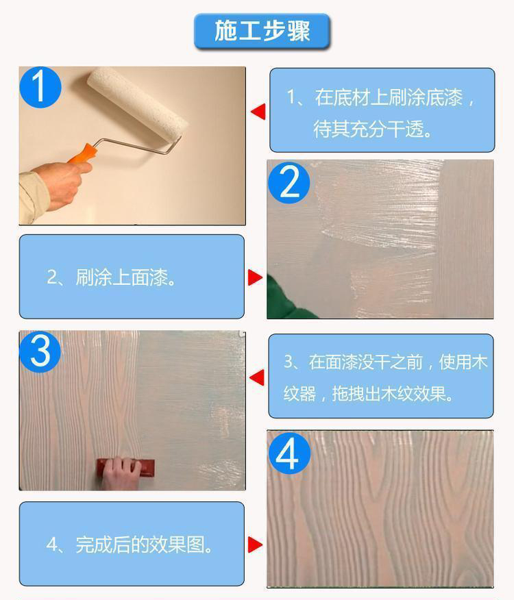 木紋漆是由底漆、面漆、高光罩面漆三種結(jié)合而操作的;