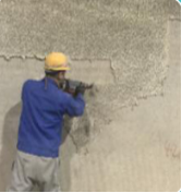 采用機(jī)械徹底、完整打磨混凝土基層表面,除去原表面的反堿、塵土、薄膜、油漆、表面涂層及其它外來物,并鏟除疏松、空鼓和蜂窩結(jié)構(gòu),使表面徹底浸透,除去積水和明水