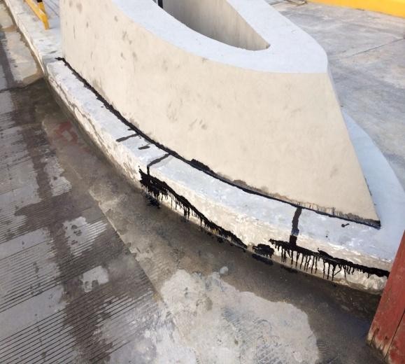 第二道工序:將局部破損較嚴(yán)重區(qū)域采用聚合物砂漿修補(bǔ)平整。先在大的缺陷、裂縫處涂上均勻、足夠的底涂,等其干燥之后用聚合物砂漿將其修補(bǔ)完整。
