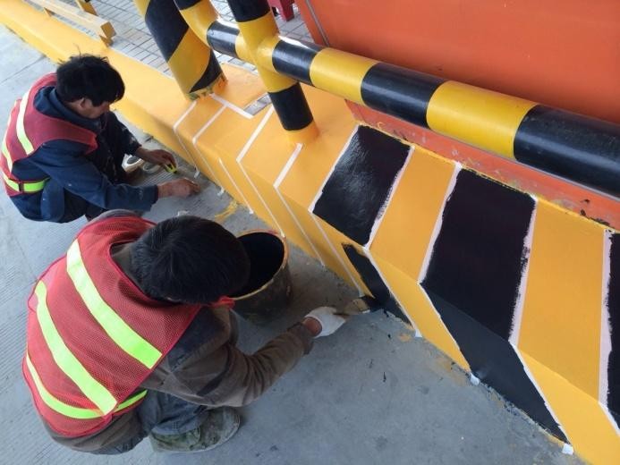 第九道工序:在涂刷好的黃黑標(biāo)線(xiàn)涂料上涂刷高光罩面層。