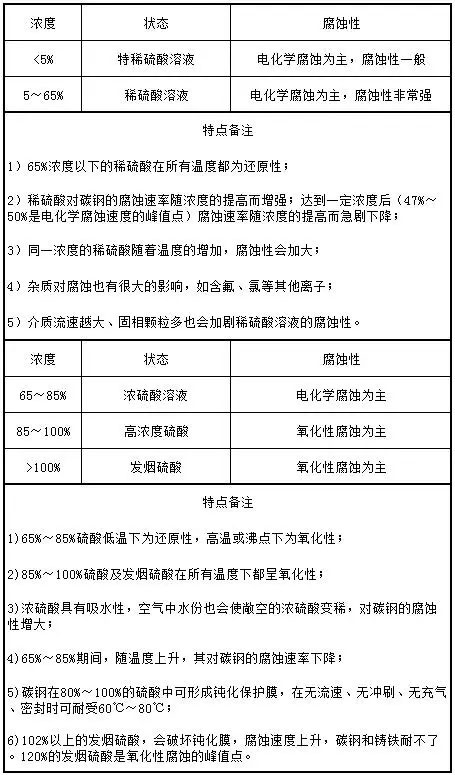 表1 市面上的硫酸常見(jiàn)的濃度、狀態(tài)及腐蝕特點(diǎn)