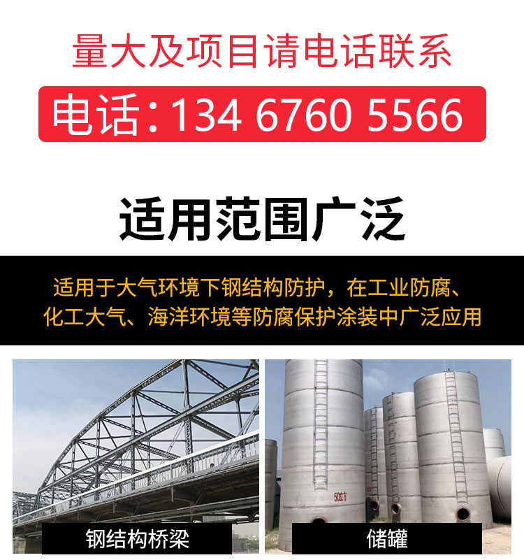 這個環(huán)氧云鐵中間漆呀!它是一種環(huán)氧樹脂、片狀云母氧化鐵、復(fù)合防銹顏料的雙組份防腐漆,它的漆膜很堅韌。作為高效屏蔽性的中間漆,對酸、堿、鹽等腐蝕介質(zhì)的抗?jié)B透性都很優(yōu)良。