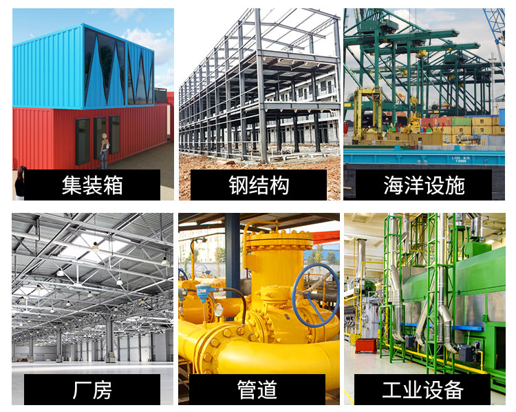 環(huán)氧云鐵中間漆適用于防腐性能要求較高的鋼鐵工件的防腐底漆或中間漆。如船舶、集裝箱、橋梁、水工閥門及構(gòu)件、煤氣柜、化工容器內(nèi)外壁、氟碳涂料,裝飾性聚氨酯面漆涂層用以增加厚度和豐滿度的中間涂層,環(huán)氧富鋅底漆的附加涂層等。
